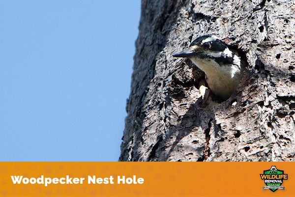 Woodpeckers are cavity-nesting birds, which means they build their nests inside holes in trees. Woodpecker nest holes are typically round or oval in shape and are just big enough for the bird to fit inside.